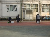 校庭の土と落ち葉をていねいに分けて、集めます。
