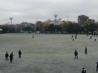 生徒たちは、校庭でからだを動かして元気に過ごします。