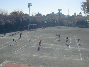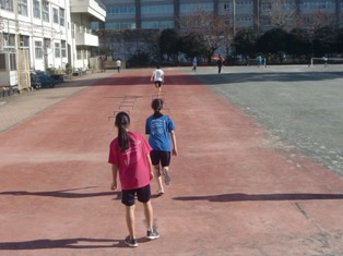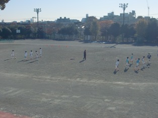 日差しが暖かな校庭では、陸上、サッカー、ソフトテニスの各部が元気に活動しています。