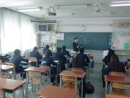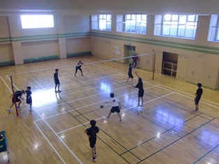 室内では、体育館・女子バレーボール部、格技室・男子バレーボール部が活動しています。3年生の教室では、土曜講習会が行われ、真剣に学習する姿が見られます。