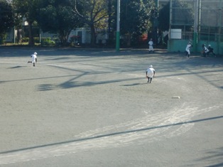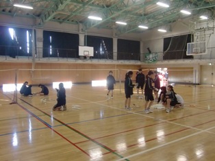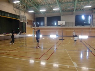校庭では、野球部が、体育館では、バドミントン部が練習に励みます。