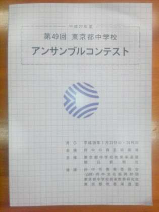 1月23日、第49回東京都中学校アンサンブルコンテストが府中の森芸術劇場で開催されました。吹奏楽部の代表七名がA部門管楽七重奏でロマネスク組曲を演奏し、銅賞を受賞しました。(会場内は撮影できないため、演奏の様子はお知らせできません。)