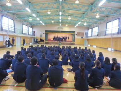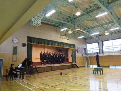 3月9日(水)に世田谷区民会館で行われる合唱コンクールに向けての練習を、3年生が行いました。初めての練習でしたが、扉を閉めた体育館の外まで歌声が響くようなとても大きな声が出ていました。3年生の合唱コンクールに対する意気込みが感じられます。