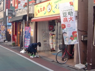 店の前の掃除やトイレ掃除、商品を並べるなど、1日目に教わったことを進んで行います。
