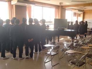 昨日で学年末考査が終わり、来週の合唱コンクールに向けた練習が本格化します。教室や体育館、格技室などの特別教室での練習が計画に沿って進みます。3年生の練習風景です。