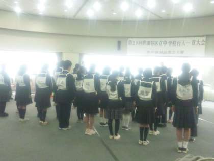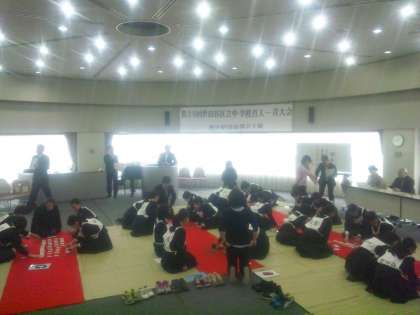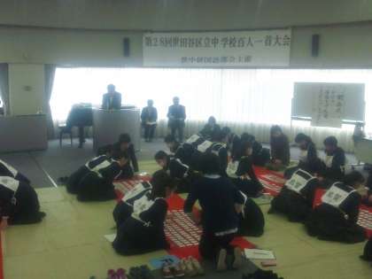区教育センターで世田谷区立中学校百人一首大会が開催されています。1年、2年の女子各1名でチームを組み出場しています。予選リーグの様子です。