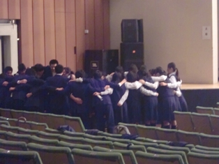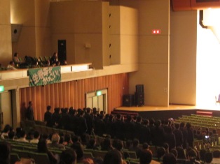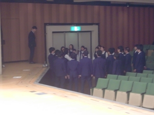 昼休み、3年生は、発表に向けて最後の練習に取り組みます。クラスごとにまとまっての練習に熱が入ります。3年生の全体合唱(発声練習)では、深みのある歌声が会場に響き渡りました。