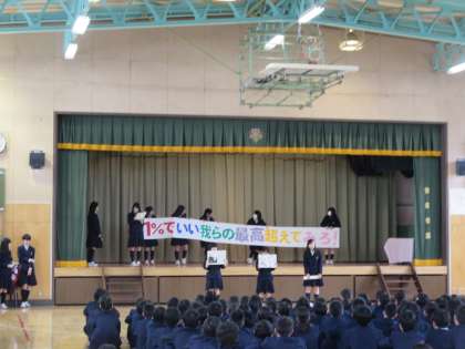 4月8日(金)に新入生と転入生対象の部活動説明会が行われました。生徒会の役員が司会を務め、それぞれの部活が部活動の特徴を上手に紹介していました。新入生は、来週から仮入部の期間を経て、本入部となります。中学校生活を充実したものにするために、自分に合った部活動を選択してほしいと思います。