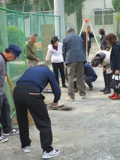 運営委員をはじめ、関係機関の方々が集まり、今年度の活動予定等が確認されました。その後、校庭のマンホールトイレの点検や使用についての訓練が行われました。今年度は「優しい避難所運営」を活動の方針として、これまで蓄積してきたことをいつでも活用できるような実践を展開していくことが確認されました。