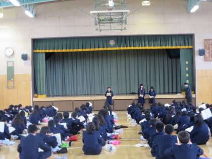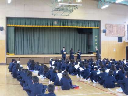 5月9日(月)に実施される、1年生の校外学習(相模湖プレジャーフォレスト)の事前指導を行いました。各係の代表の生徒からの説明と、担当の教員からの注意等が話されました。生徒たちは、真剣に話を聞いていました。