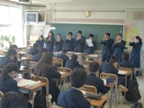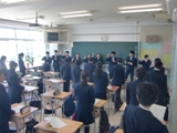 応援団の練習が始まりました。3年生が1年生の教室を訪問し、1年生の応援団員とともに応援の説明や練習を行いました。緑丘中学校伝統の応援合戦が楽しみです。