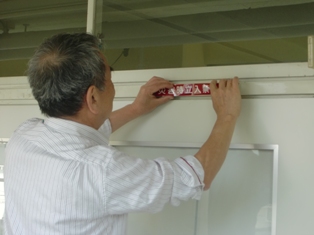 平成28年度の運営委員名簿の確認等の後、避難所開設時に開放する教室の表示を新たにする作業が、町会ごとに分かれて行われました。