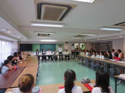 みどりの学び舎、上北沢小学校、経堂小学校、八幡山小学校、3小学校の児童会の児童のみなさんが、緑丘中学校に来校して、本校ミーティングルームで、緑丘中学校の生徒会の生徒と交流会を行いました、それぞれの学校の特徴を発表した後、緑丘中学校の生徒会役員が小学校の児童のみなさんを校舎内の案内をしました。その後、ミーティングルームに戻って、本日の感想を発表しました。本日の会が、みどりの学び舎の小学校・中学校の友好・親善につながるとよいです。