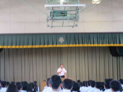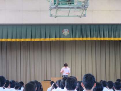 生活指導主任の先生からは、「部活動の試合を見学に行った時や、校外で活動するときに挨拶やマナーをしっかりとしよう」という話がありました。