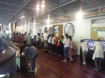富士湧水の里水族館では、学習ビデオの視聴や様々な淡水魚などを見学しました。しっかりと見学する生徒たちです。