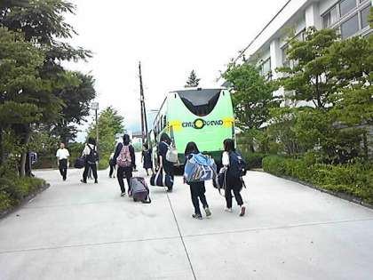 閉園式の様子です。三日間、お世話になった河口湖林間学園を後にします。富士山五合目に向けて出発です。