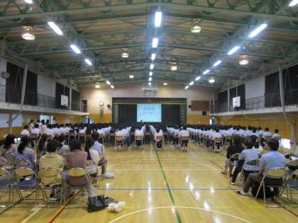 セーフティ教室が開催されました。講師の先生を招いて、携帯電話やSNS、インターネットを使用する際に気を付けるべき点について学びました。生徒たちは真剣に話を聞いていていました。保護者・地域の方も参加し、その後意見交換を行いました。