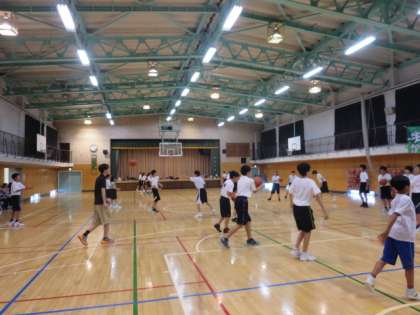 夏休みに、学び舎の小学生(5年生・6年生)が緑丘中学校の部活動体験を行います。今日は女子バレーボール部とバスケットボール部で体験を行いました。小学生の皆さんはとても一生懸命に取り組んでいました。また、緑丘中生も工夫して小学生に教えていました。