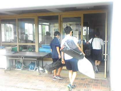 野球部の練習会場です。職員の方に挨拶し、用具をしまい、本日の練習会場に向かいます。雨はほぼ止んでいます。明日からが楽しみです。