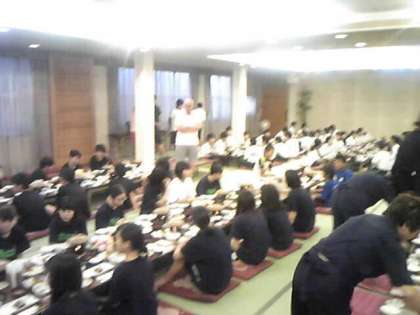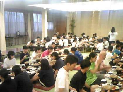 夕食の時間です。手際よく配膳し、食事が始まりました。生徒たちは食が進みます。
