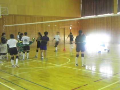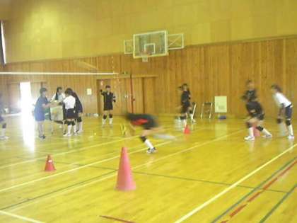 女子バレーボール部の練習の様子です。レシーブの練習に取り組んでいます。