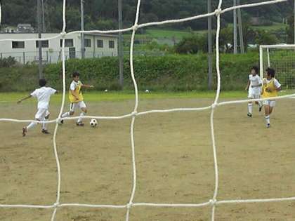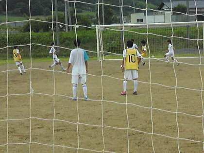 4対4の練習の様子です。互いに指示をコミュニケーションを取りながら、ゲームに取り組みます。