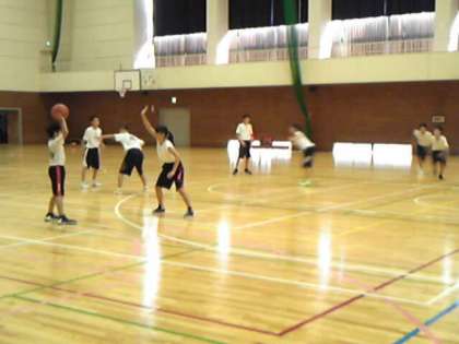 バスケット部の練習の様子です。グループに別れて、異なる内容の練習に取り組みます。