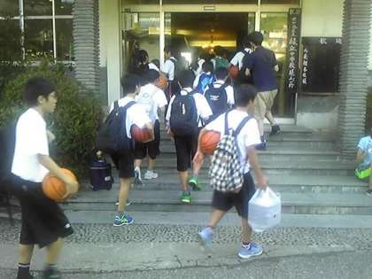 1日の練習を無事終了しました。宿舎に近辺では夕立がありましたが、現在は晴れ。明日も天気はよいようです。全ての部が宿舎に戻りました。入浴後は、夕食です。