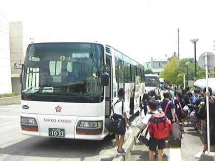 閉園式を行い、お世話になった宿舎方々ともお別れです。ありがとうございました。学校をめざして出発しました。