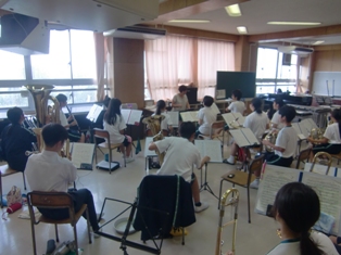 雷雨のため、野球部は、急きょ校庭から格技室に練習会場を移しての練習です。吹奏楽部は、8月6日のコンクールに向けて、一日練習を行っています。バスケットボール部は、明日、練習試合です。