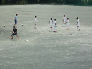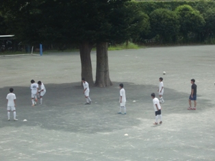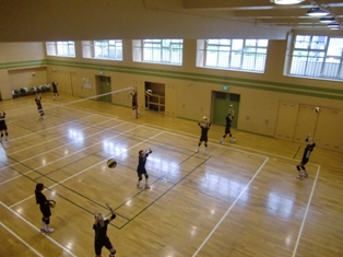 午前中、校庭ではサッカー部、格技室では女子バレー部が活動しています。