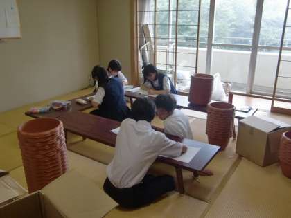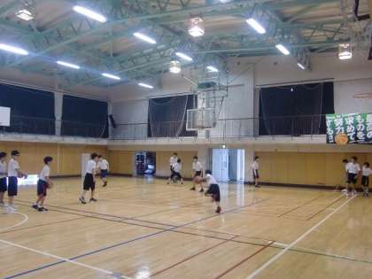 体育館ではバスケットボール部、新和室では緑のボランティア部、格技室では陸上部、音楽室では吹奏楽部が活動しています。バスケットボール部、緑のボランティア部の様子です。