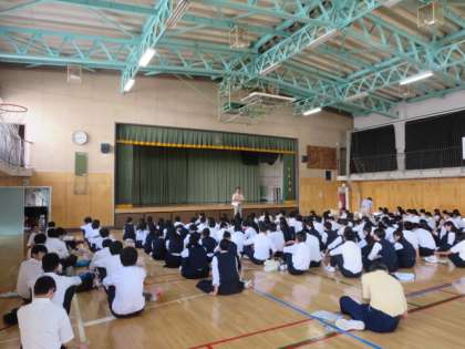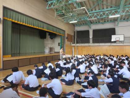 9月4日(日)から9月6日(火)に実施される、3年生の修学旅行の事前指導を体育館で行いました。担当の教員から時程等の確認、修学旅行中の行動についての注意事項が話されました。特にスマートホンや携帯電話などの不要物は必要がないので、持っていかないようにという確認が行われました。ルールとマナーを守って、思い出に残る修学旅行になると良いです。