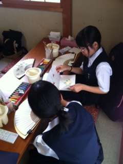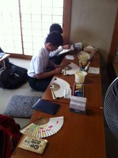 舞扇堂にて、扇子の絵付けをしています!