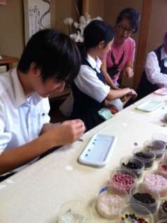 好きな玉を選んで、数珠を作成しています!
