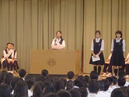 中間考査最終日の午後、生徒会役員選挙が実施されました。体育館での立会演説会の様子です。立会演説会では、全校生徒に向けて、立候補者が抱負や当選後の方針などを分かりやすく伝えました。併せて、全校生徒の立候補者への理解が深まるように、応援者は応援演説を行いました。立会演説後、各クラスにて投票を行い、来週始めに投票結果が発表されます。選挙管理委員会が生徒会役員選挙にかかわる運営をしっかりと行いました。