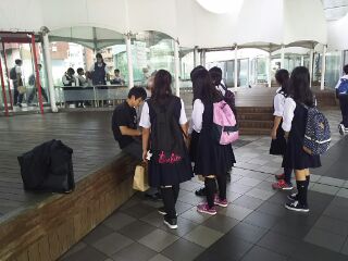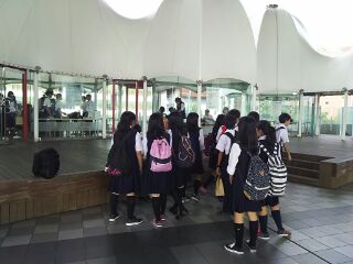 江戸東京博物館でのお昼のチェックの様子です。ここでお昼ご飯を食べます。後半もルールを守って班行動をしましょう。