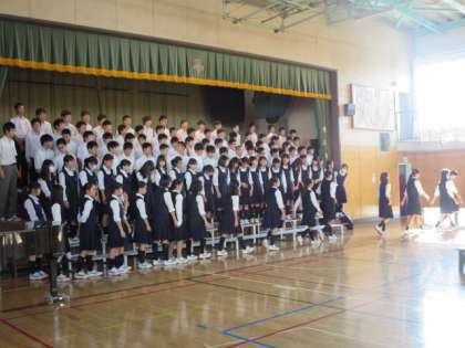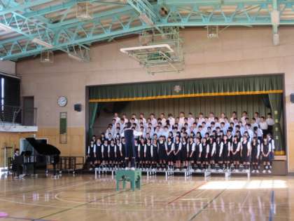 学芸発表会に向けて、2年生の学年合唱の練習を行いました。本日は今年度初めてということもあり、舞台上での並び方や入退場の仕方の確認も行いました。