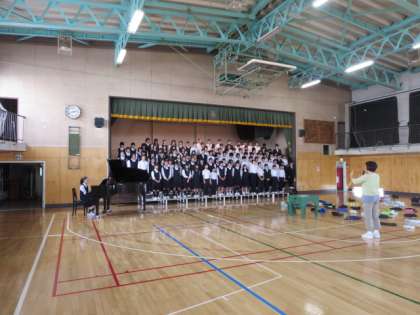 10月14日(金)1校時に3年生が、6校時に1年生が学年合唱の練習を行いました。これから学芸発表会に向けて、真剣な練習が続きます。各学年の当日の歌声が楽しみです。
