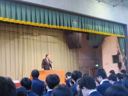 生活指導主任の先生からは、「本日より冬服完全実施です。着方をしっかりしましょう。また、セーターなどの防寒着の着方についてもしっかりしましょう。日ごろからの生活をしっかりとしましょう。」という話がありました。