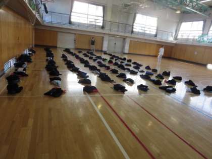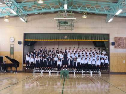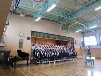 1校時に1年生が、5校時に2年生が学年合唱の練習を行いました。だんだん大きな声が出てきて、ハーモニーも素敵なものになってきました。また、体育館に持ってきた自分の荷物が、整然と置かれています。歌うことだけではなく、合唱に臨む態度すべてがしっかりとしていないと、良いものは生まれません。