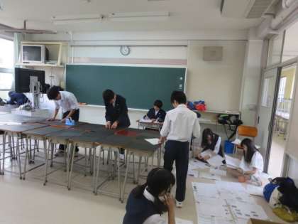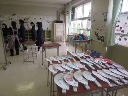 学芸発表会に向けての、展示準備の様子です。