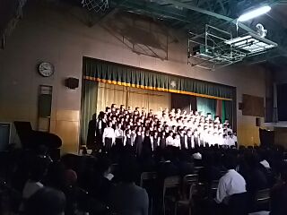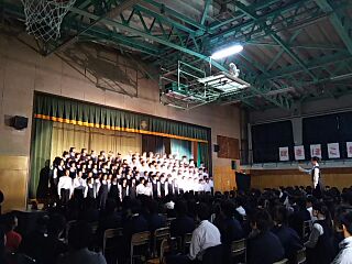 1年生学年合唱の様子です。曲は、カリブ夢の旅と僕らの奇跡です。