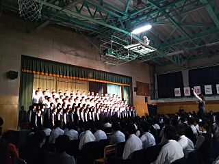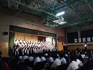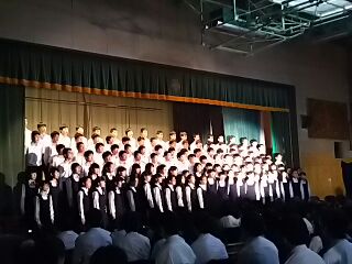2年生学年合唱の様子です。曲は走る川です。
