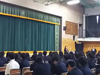 学芸発表会の閉会式の様子です。校長先生からは、このようなすばらしい時間をありがとう。特に3年生は、3年間の成長がみられました。来賓の方々からも、お褒めの言葉をいただきました。3年生のリーダーシップが発揮された学芸発表会でした。1、2年生のみなさんも、学芸発表会のスローガンのもと、頑張りました。大勢の方々の支えのもとに成功した学芸発表会でした。この経験をこれからの生活に生かして、下半期もそれぞれの目標をもって、過ごしてほしい。という話がありました。そして、実行委員長からも生徒たちの頑張りについて、お互いの健闘を称える言葉がありました。