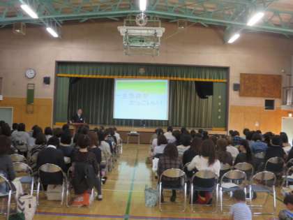 新入生保護者説明では、学校長から本校の特色、教育方針について、教務主任から学習について、生活指導主任から学校生活について、保健給食主任の養護教諭から保健関係のことについて説明をいたしました。また、本校PTA会長から、本校ののPTA活動についての話をいたしました。