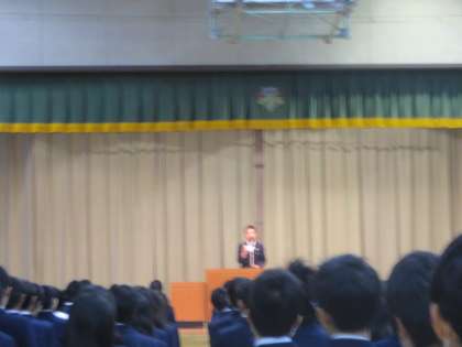 校長先生からは「今学期も半分過ぎましたが、みなさん、行事で頑張りました。来週、期末考査があります。自分で納得できる取り組みをしてください。今月の人格の完成は「フェア」です。フェアは、公正・公平ということです。お互いのことを視野に入れて、気持ちのよい学校生活を送っていますか。また、以前講演会で「人間と、他の動物が違うところは、人間は諦めない動物である。困難があっても向かっていける動物である。また、人間は食べるときに集うが、他の動物は仲良く食べることはない。」ということを聞きました。このことはいろいろと示唆のある内容ではないでしょうか。」という話がありました。