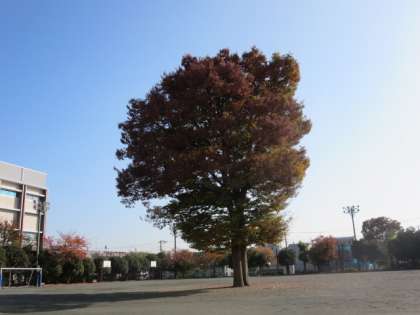 本校のシンボルである「けやき」が色づいてきました。地面には落ち葉もたくさん落ちています。12月には、生徒会とみどりのボランティア部が中心となった落ち葉掃きボランティアも計画されています。