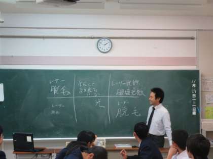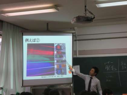 都立総合工科高等学校の先生によるレーザー加工についての授業の様子です。