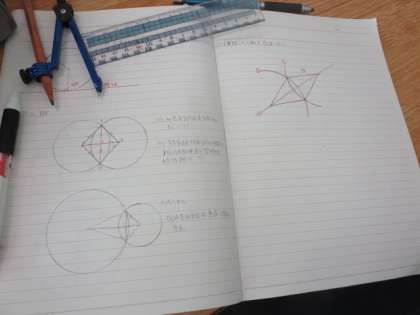 生徒たちは、三角形やひし形などの基本的な図形の作図の方法を学び、実際に様々な方法で作図を行いました。